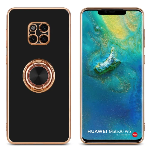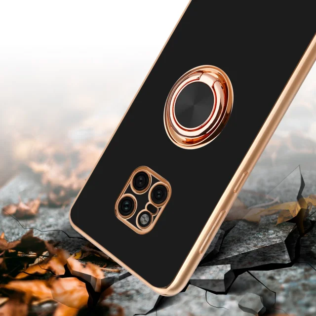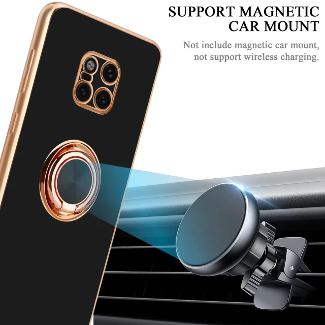 CADORABO Huawei v sijajnem črni barvi - Zlato z obročem silikonski/TPU ovitek z zaščito pred kamero in držalo magnetnega avtomobila