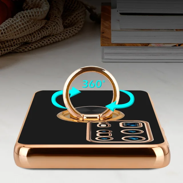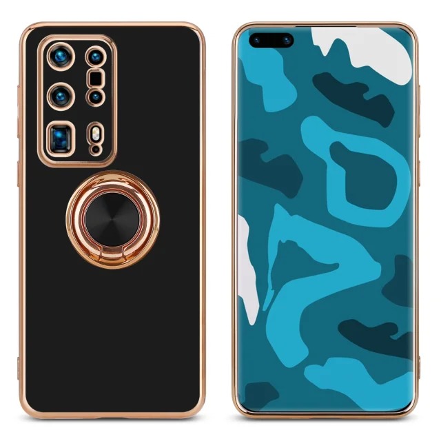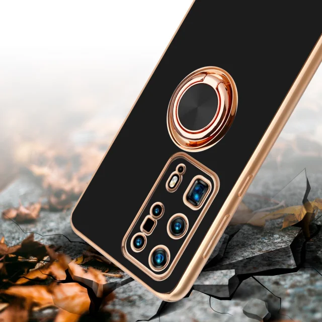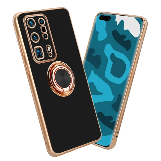 CADORABO Huawei v sijajnem črni barvi - Zlato z obročem silikonski/TPU ovitek z zaščito pred kamero in držalo magnetnega avtomobila