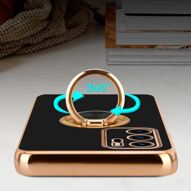 CADORABO Huawei v sijajnem črni barvi - Zlato z obročem silikonski/TPU ovitek z zaščito pred kamero in držalo magnetnega avtomobila