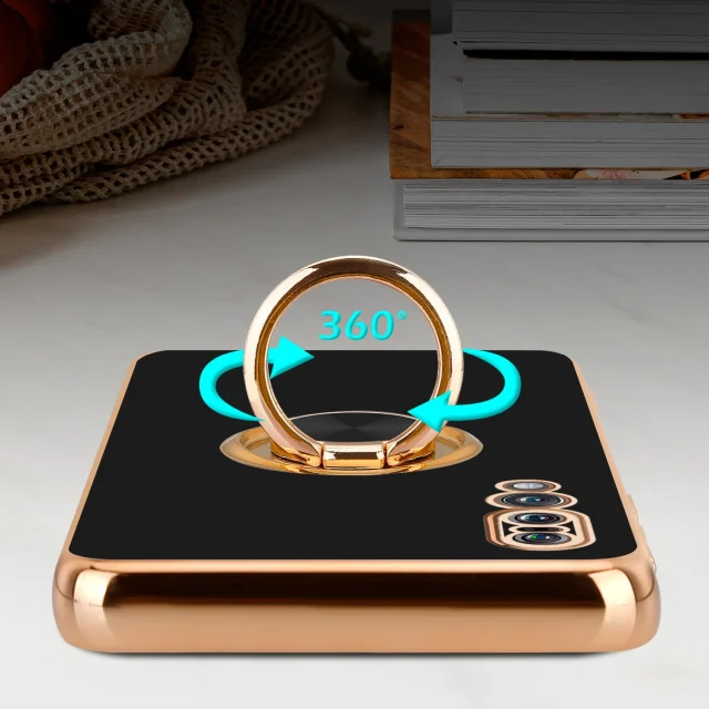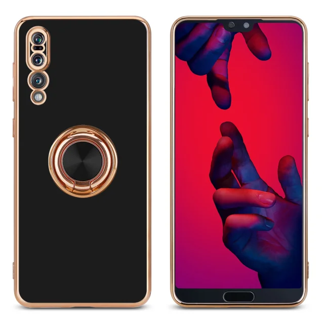 CADORABO Huawei v sijajnem črni barvi - Zlato z obročem silikonski/TPU ovitek z zaščito pred kamero in držalo magnetnega avtomobila
