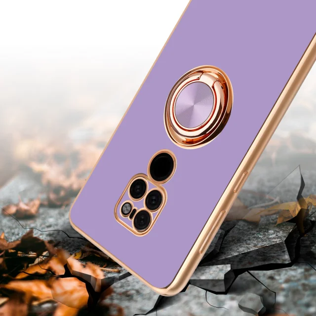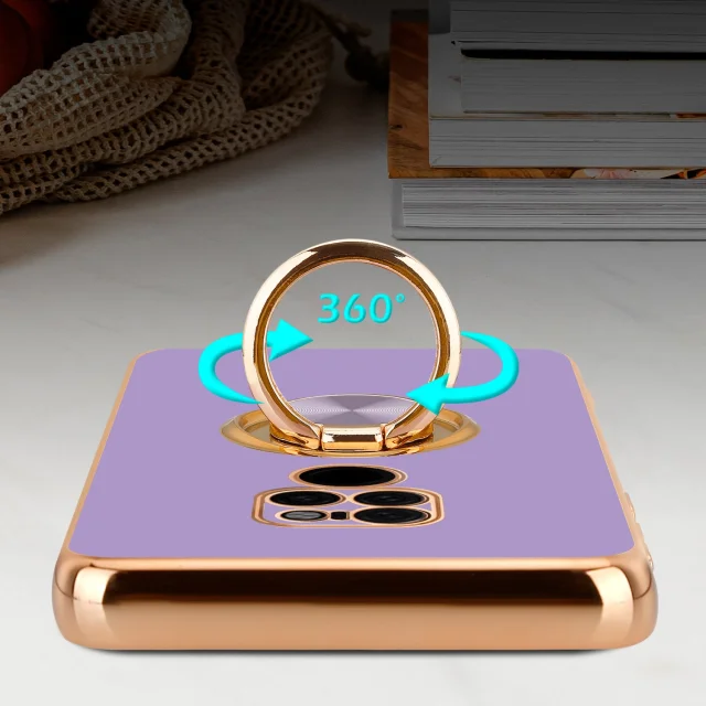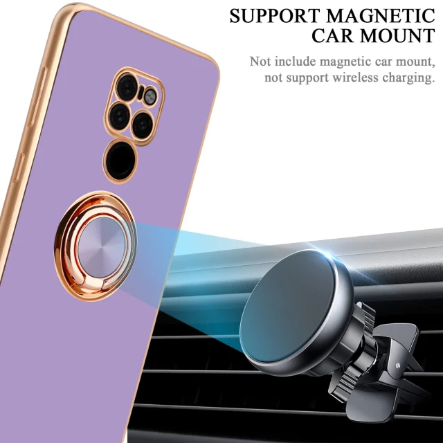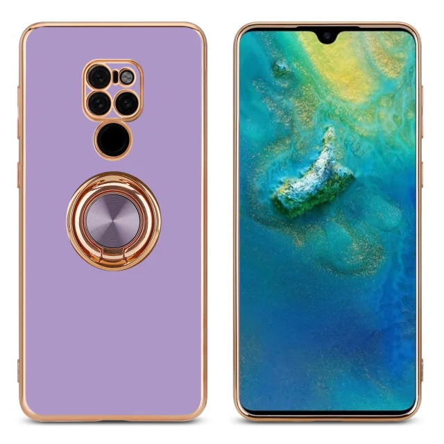 CADORABO Huawei v sijajnem svetlobnem vijoličnem - Zlato z obročem silikonski/TPU ovitek z zaščito pred kamero in držalo magnetnega avtomobila