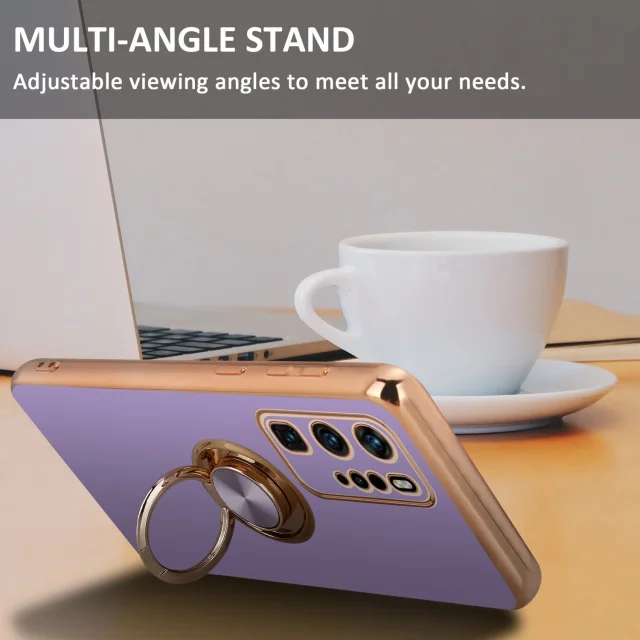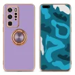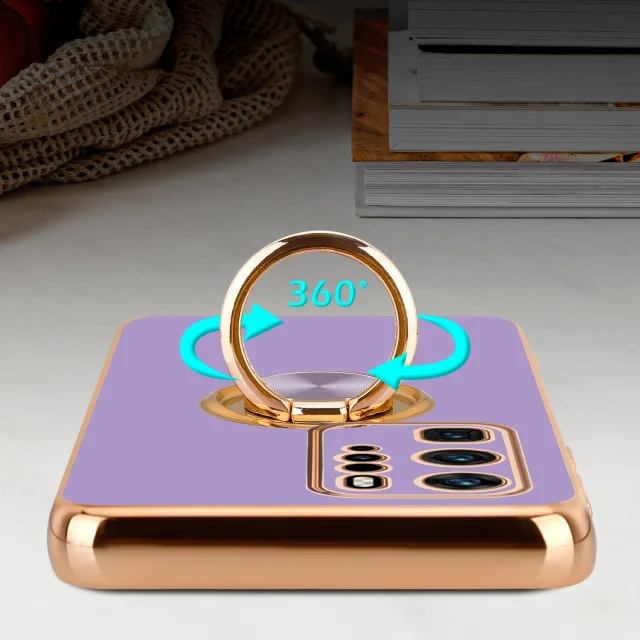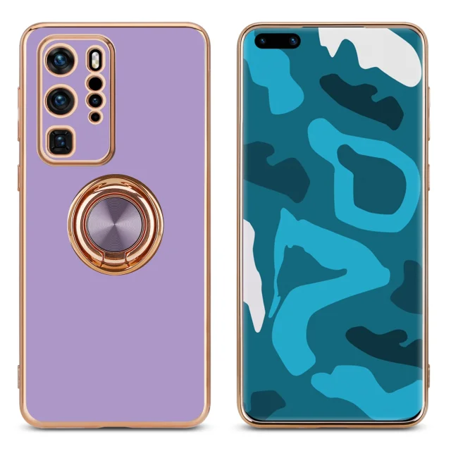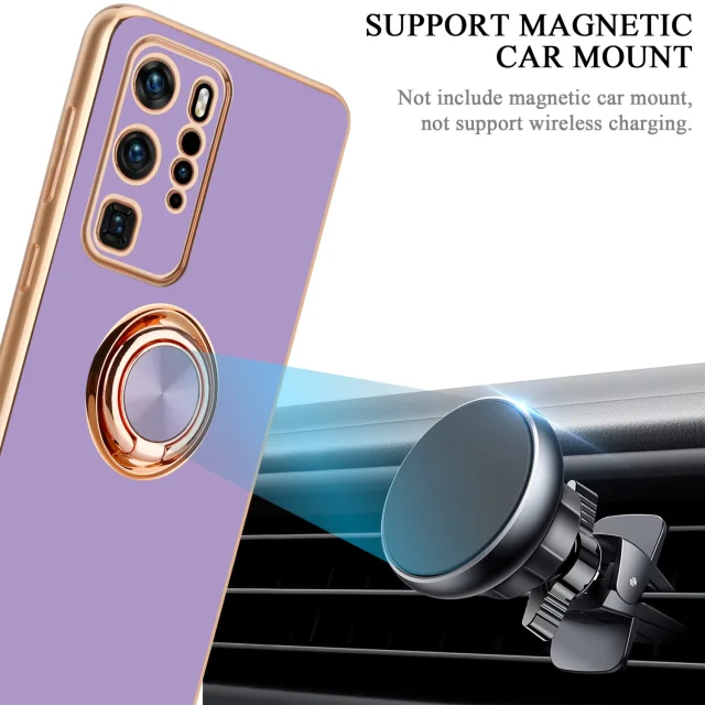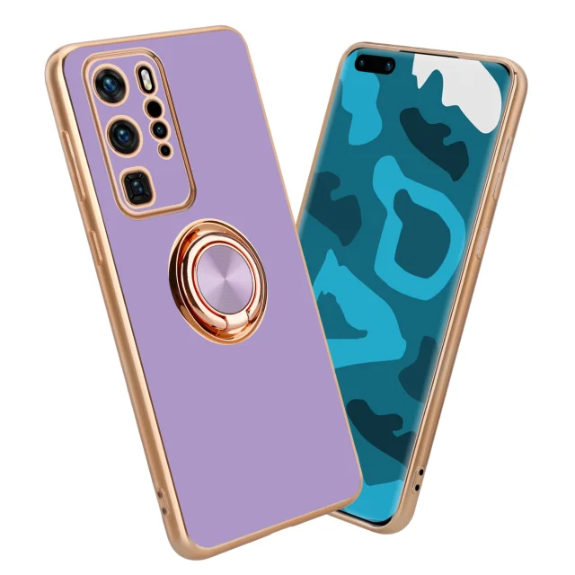 CADORABO Huawei v sijajnem svetlobnem vijoličnem - Zlato z obročem silikonski/TPU ovitek z zaščito pred kamero in držalo magnetnega avtomobila