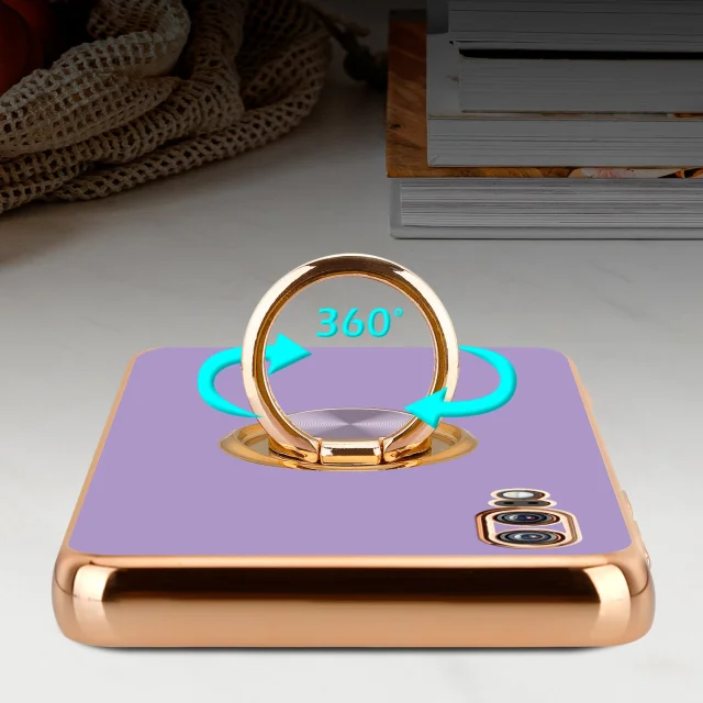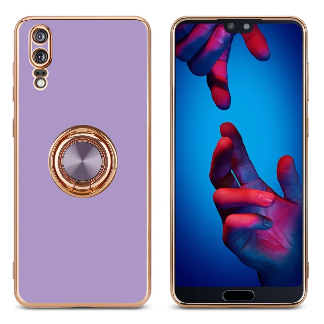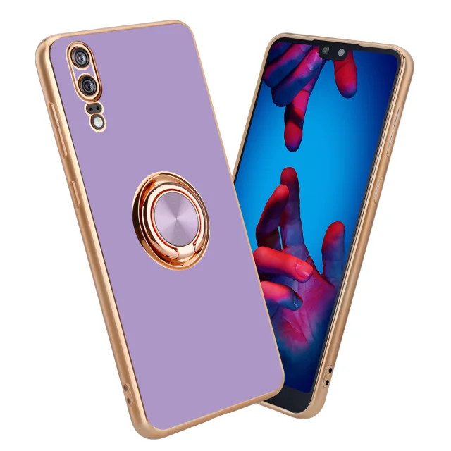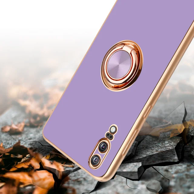CADORABO Huawei v sijajnem svetlobnem vijoličnem - Zlato z obročem silikonski/TPU ovitek z zaščito pred kamero in držalo magnetnega avtomobila