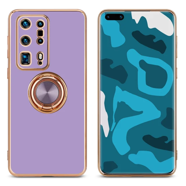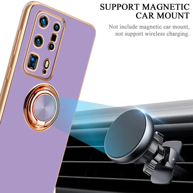 CADORABO Huawei v sijajnem svetlobnem vijoličnem - Zlato z obročem silikonski/TPU ovitek z zaščito pred kamero in držalo magnetnega avtomobila