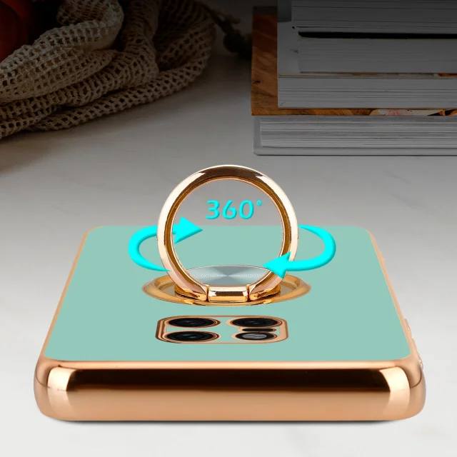 CADORABO Huawei v sijajni turkizni - Zlato z obročem silikonski/TPU ovitek z zaščito pred kamero in držalo magnetnega avtomobila