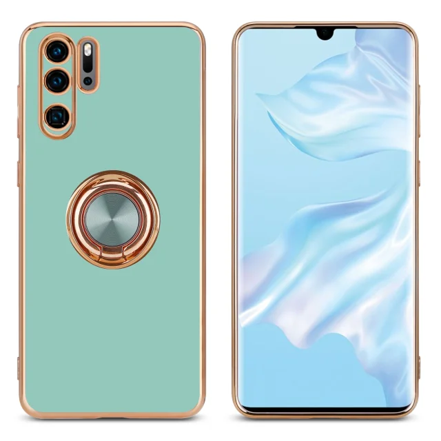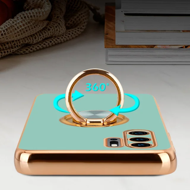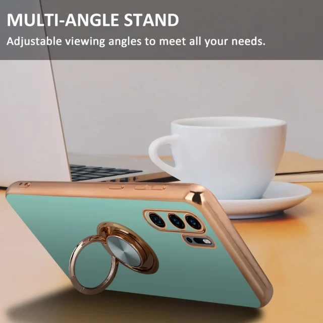 CADORABO Huawei v sijajni turkizni - Zlato z obročem silikonski/TPU ovitek z zaščito pred kamero in držalo magnetnega avtomobila