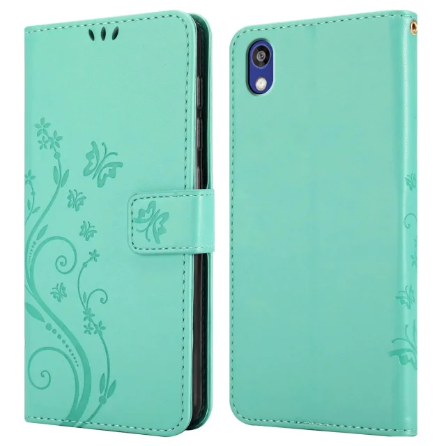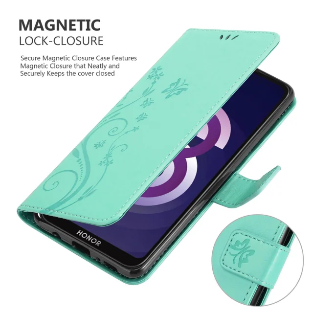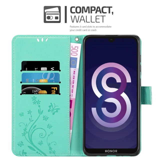 CADORABO Huawei Y5 2019/Enjoy Play 8/Honor 8S srebrna - ovitek v cvetličnem dizajnu z magnetnim zapiranjem, stoječo funkcijo in režami za kartice