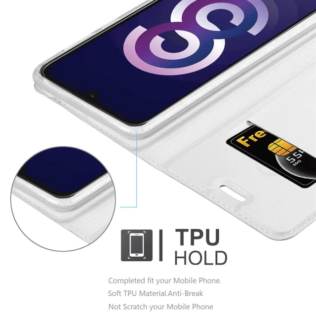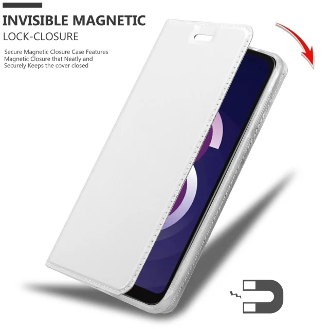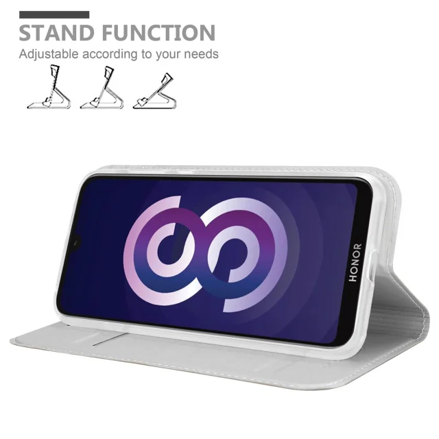 CADORABO Huawei Y5 2019/Enjoy Play 8/Honor 8S v klasično srebrno - Zaščitni ovitek z magnetnim zapiranjem, stoječo funkcijo in režo za kartice
