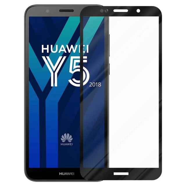 CADORABO Huawei Y5 PRIME 2018/Y5 2018 - Zaščitna folija za transparentna s črno barvo - Zaščitno steklo s kaljenim zaslonom s trdoto 9H in 3