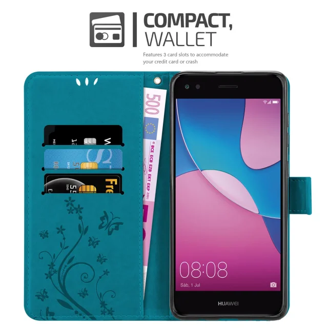 CADORABO Huawei Y6 PRO 2017 v klasična rožnata zlata - ovitek v cvetličnem dizajnu z magnetnim zapiranjem, stoječo funkcijo in režami za kartice