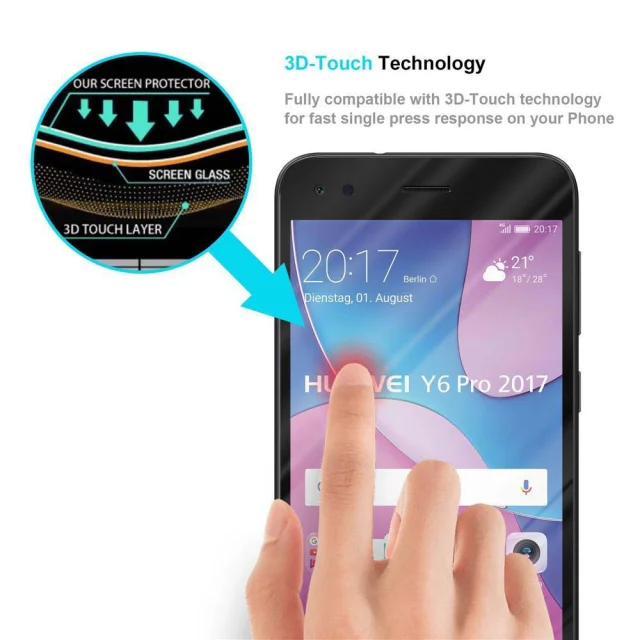 CADORABO Huawei Y6 PRO 2017 - Zaščitna folija za transparentna s črno barvo - Zaščitno steklo s kaljenim zaslonom s trdoto 9H in 3D dotikom