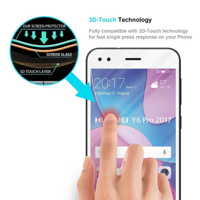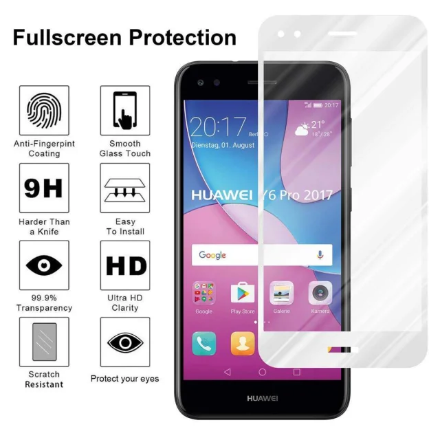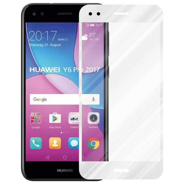 CADORABO Huawei Y6 PRO 2017 - Zaščitna folija za transparentna z belo - Zaščitno steklo s kaljenim zaslonom s trdoto 9H in 3D dotikom