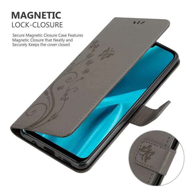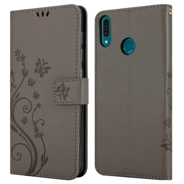 CADORABO Huawei Y9 2019 v klasična črna - ovitek v cvetličnem dizajnu z magnetnim zapiranjem, stoječo funkcijo in režami za kartice