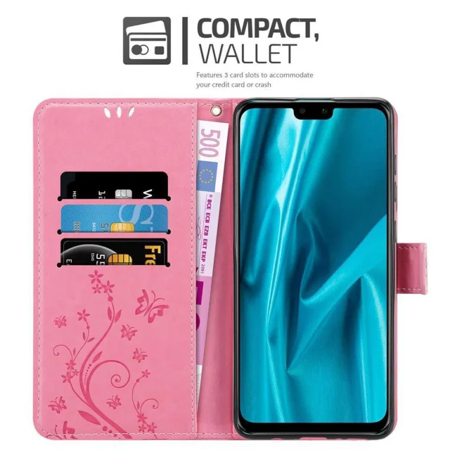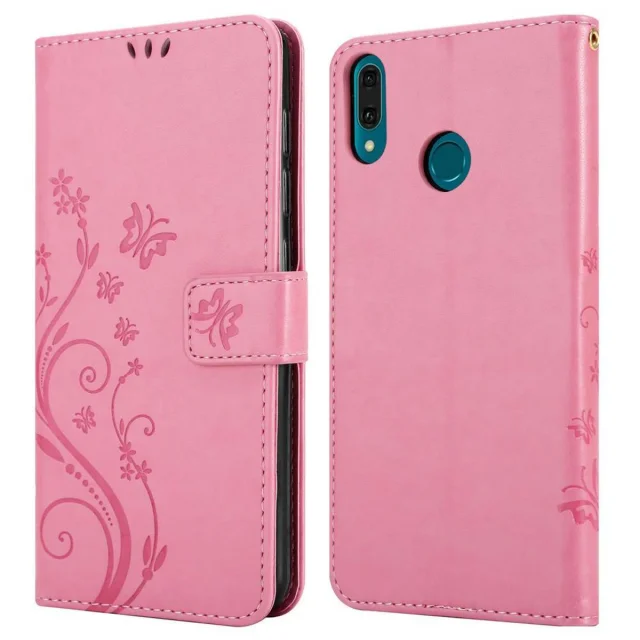 CADORABO Huawei Y9 2019 v klasična zlata - ovitek v cvetličnem dizajnu z magnetnim zapiranjem, stoječo funkcijo in režami za kartice