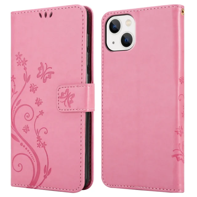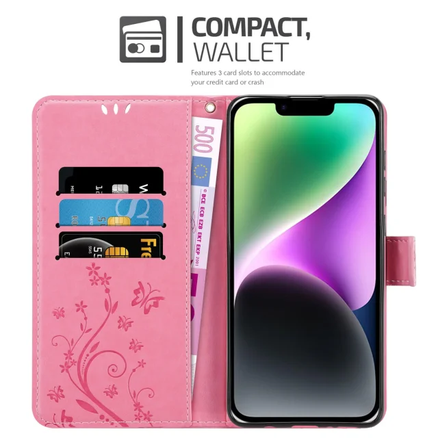 CADORABO jabolkom v cvetlični roza barvi - zaščitni pokrov pri oblikovanju cvetja z magnetnim zapiranjem, stoječimi funkcijami in režami za kartice