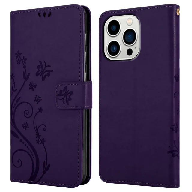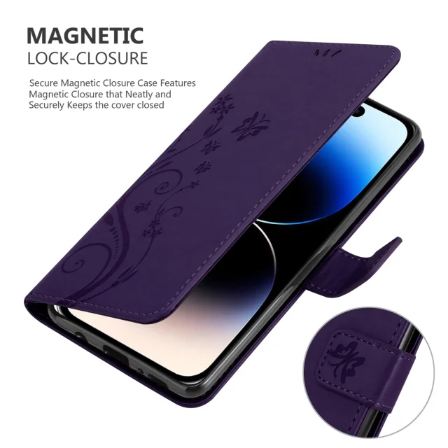CADORABO jabolkom v cvetni temno vijolični barvi - zaščitni pokrov pri oblikovanju cvetja z magnetnim zapiranjem, stoječimi funkcijami in režami za ka