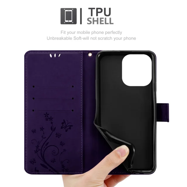 CADORABO jabolkom v cvetni temno vijolični barvi - zaščitni pokrov pri oblikovanju cvetja z magnetnim zapiranjem, stoječimi funkcijami in režami za ka