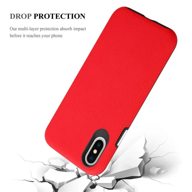 CADORABO jabolkom v nageljni rdeči - zunanji hibridni zaščitni pokrov z dodatno oprijemljivo površino v trikotniku, narejen iz silikona in plastike