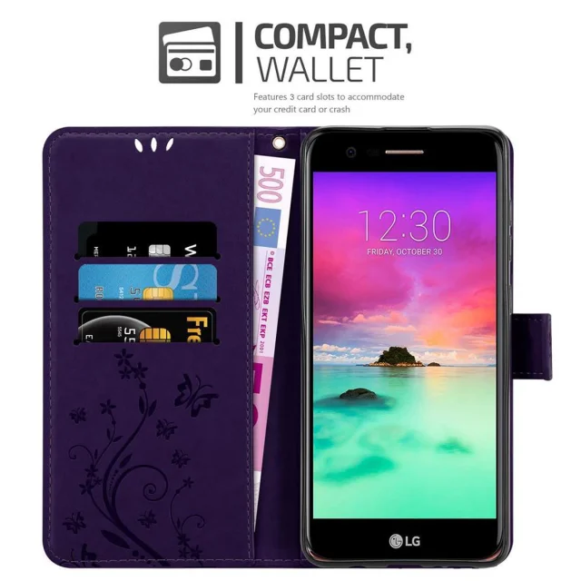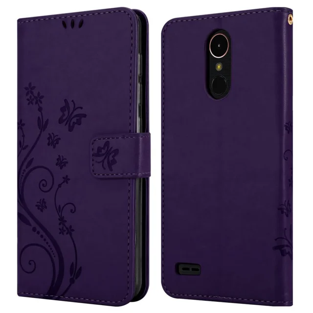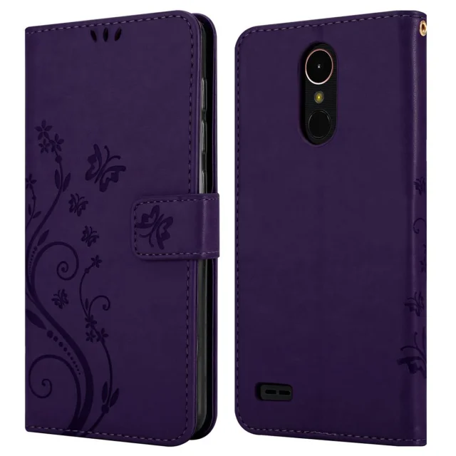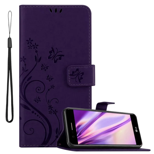 CADORABO LG K10 2017 v klasična temno modra - ovitek v cvetličnem dizajnu z magnetnim zapiranjem, stoječo funkcijo in režami za kartice