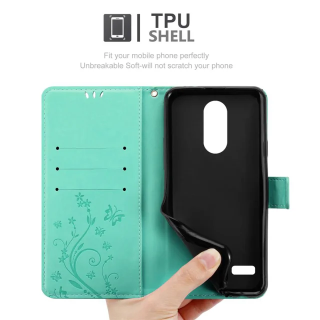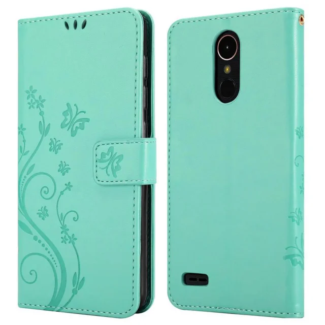 CADORABO LG K10 2017 v klasično srebrno - ovitek v cvetličnem dizajnu z magnetnim zapiranjem, stoječo funkcijo in režami za kartice