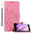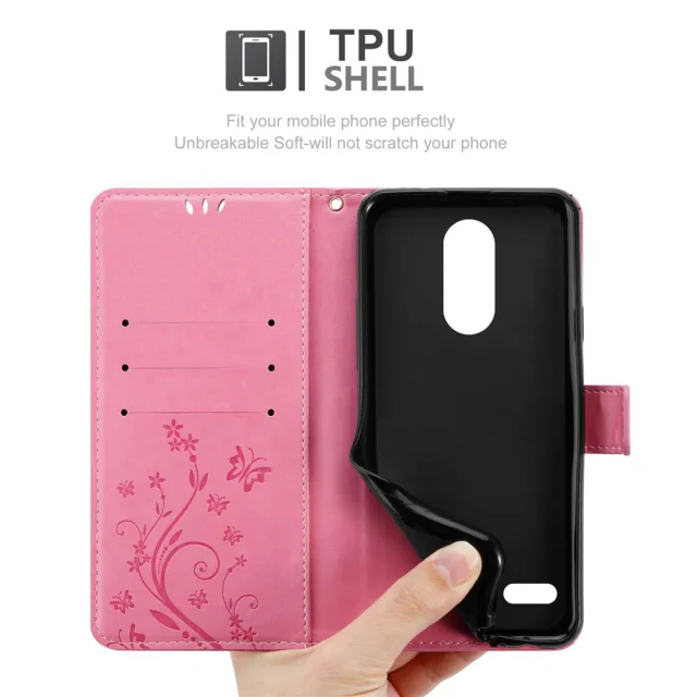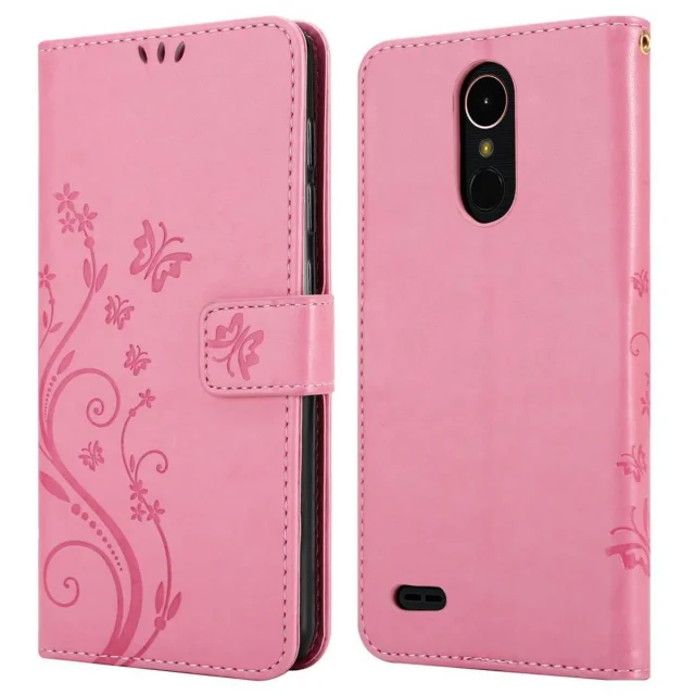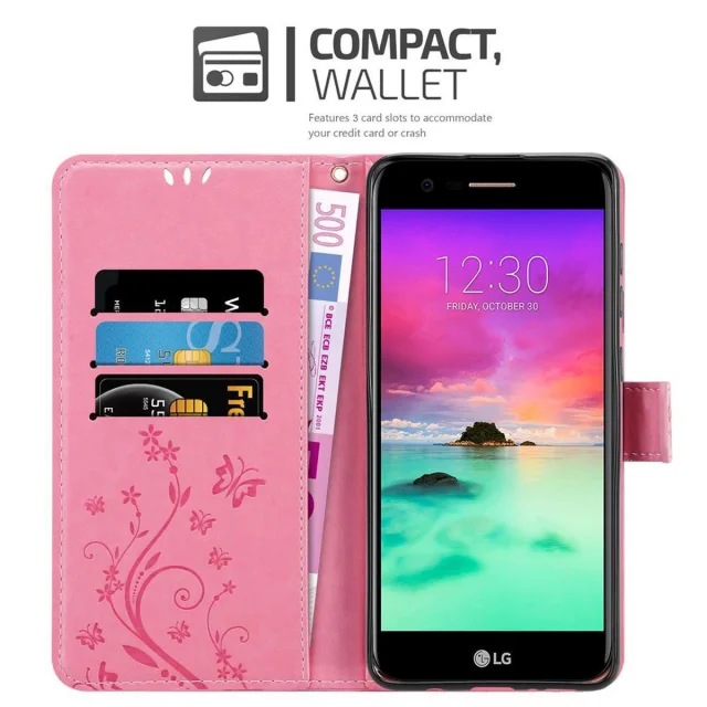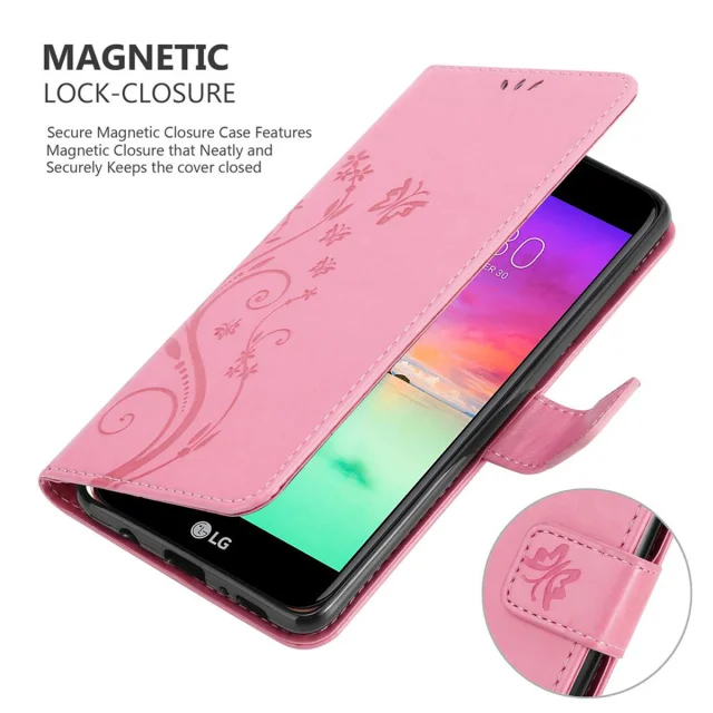 CADORABO LG K10 2018/K11/K11 PLUS v klasična zlata - ovitek v cvetličnem dizajnu z magnetnim zapiranjem, stoječo funkcijo in režami za kartice
