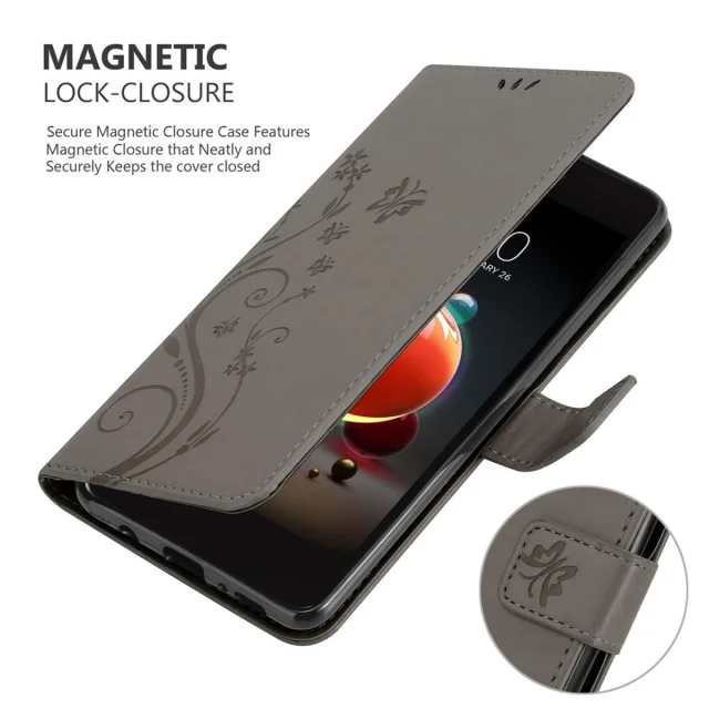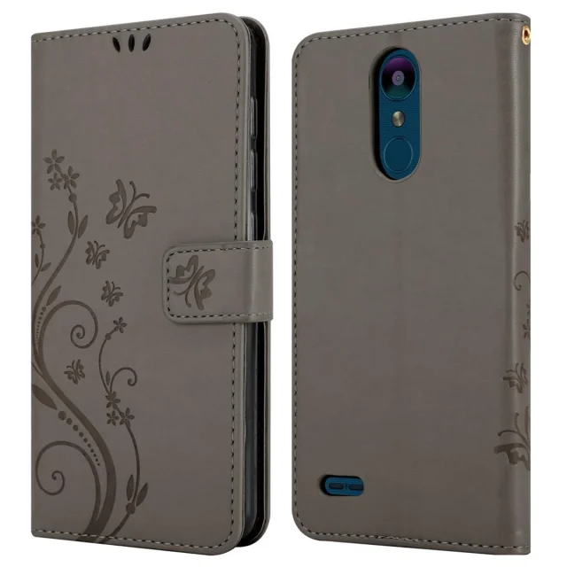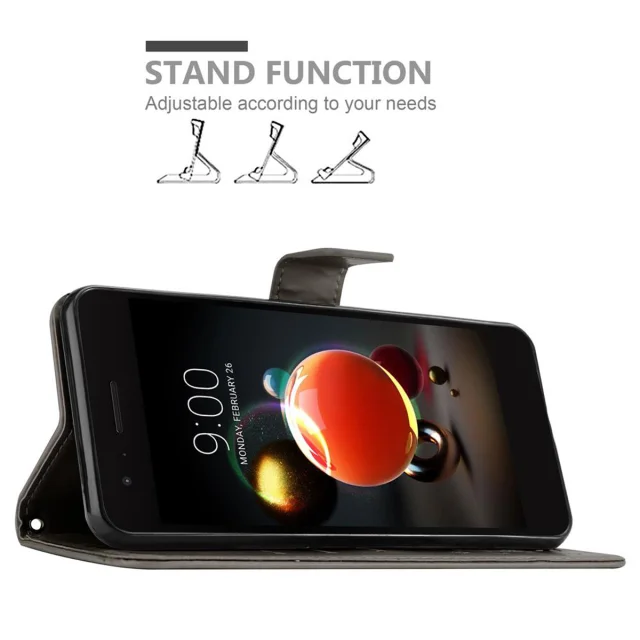 CADORABO LG K8 2018/K9 2018 v klasična črna - ovitek v cvetličnem dizajnu z magnetnim zapiranjem, stoječo funkcijo in režami za kartice