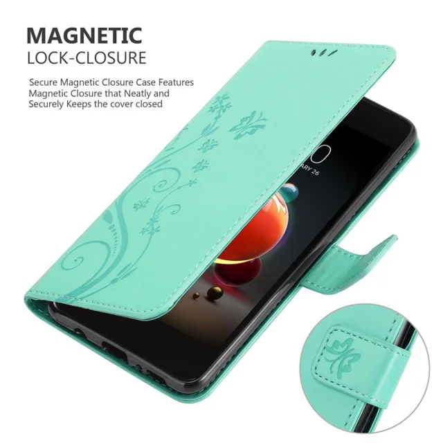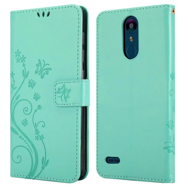 CADORABO LG K8 2018/K9 2018 v klasično srebrno - ovitek v cvetličnem dizajnu z magnetnim zapiranjem, stoječo funkcijo in režami za kartice