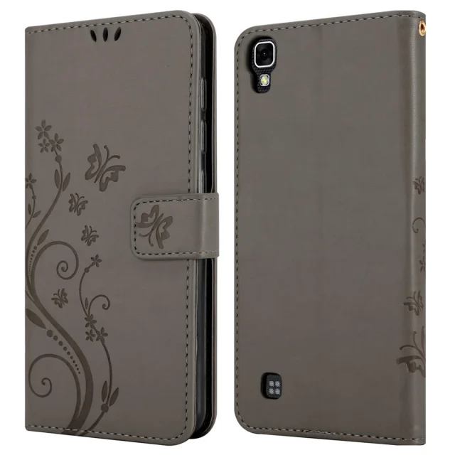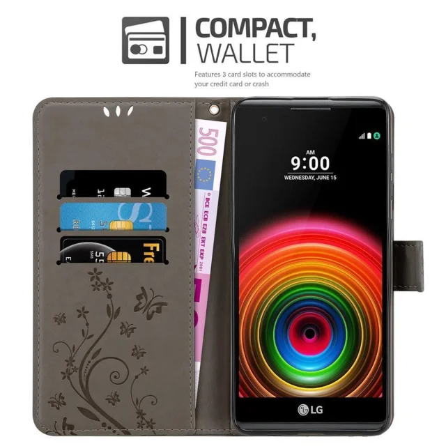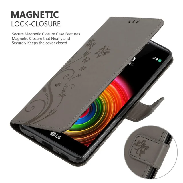 CADORABO LG X POWER v klasična črna - ovitek v cvetličnem dizajnu z magnetnim zapiranjem, stoječo funkcijo in režami za kartice