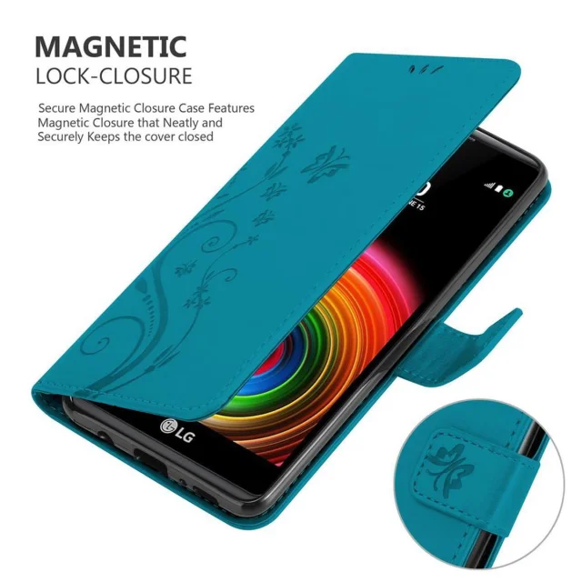 CADORABO LG X POWER v klasična rožnata zlata - ovitek v cvetličnem dizajnu z magnetnim zapiranjem, stoječo funkcijo in režami za kartice