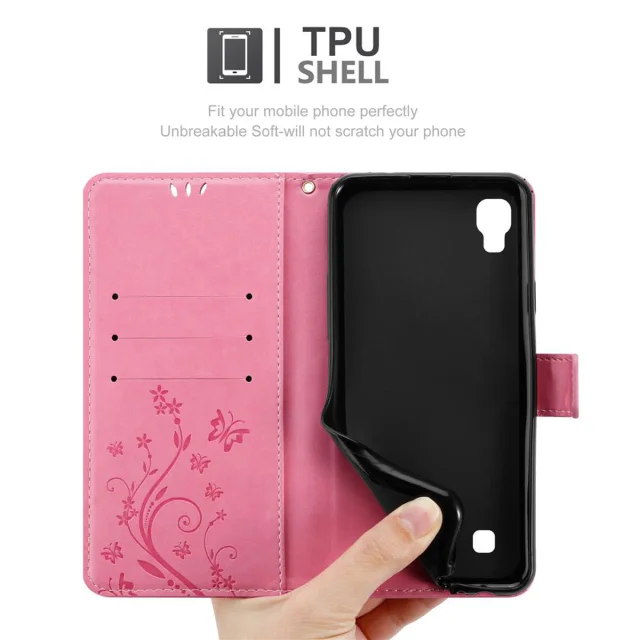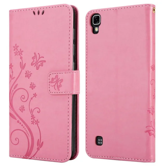 CADORABO LG X POWER v klasična zlata - ovitek v cvetličnem dizajnu z magnetnim zapiranjem, stoječo funkcijo in režami za kartice