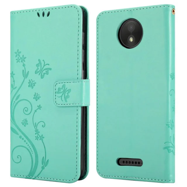 CADORABO Motorola MOTO C PLUS v klasično srebrno - ovitek v cvetličnem dizajnu z magnetnim zapiranjem, stoječo funkcijo in režami za kartice