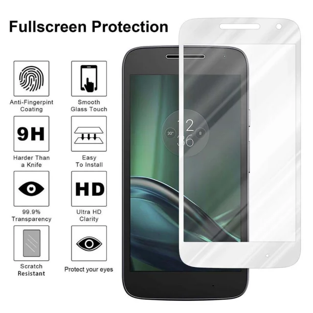 CADORABO Motorola MOTO G4 PLAY - Zaščitna folija za transparentna z belo - Zaščitno steklo s kaljenim zaslonom s trdoto 9H in 3D dotikom