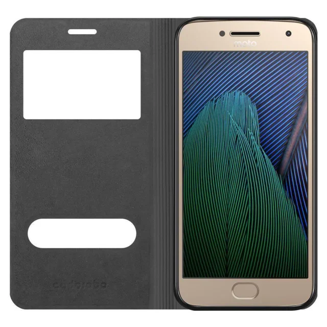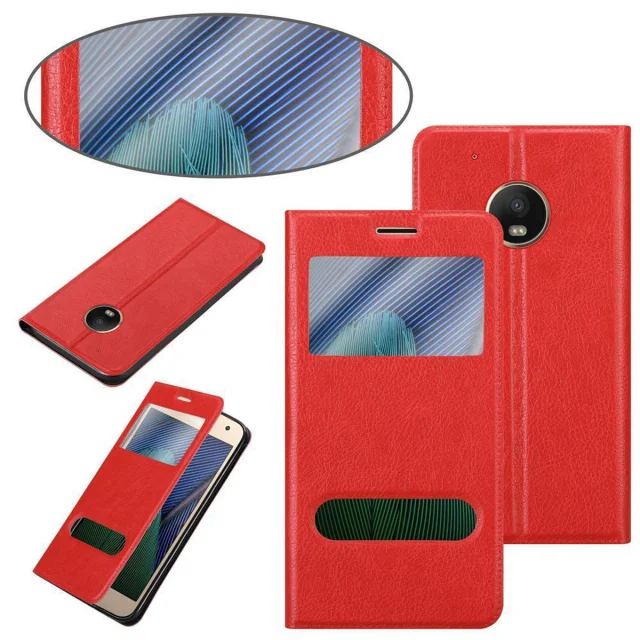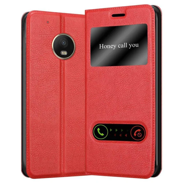CADORABO Motorola MOTO G5 PLUS v žafranovo rdeča - Zaščitni ovitek z magnetnim zapiranjem, stoječo funkcijo in 2 okencema za gledanje