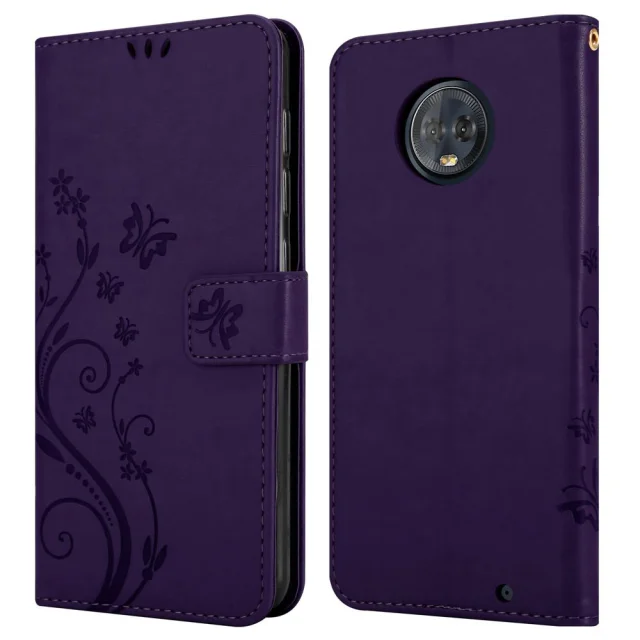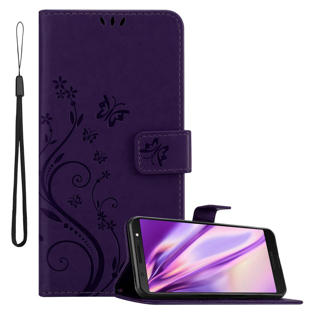 CADORABO Motorola MOTO G6 PLUS v klasična temno modra - ovitek v cvetličnem dizajnu z magnetnim zapiranjem, stoječo funkcijo in režami za kartice