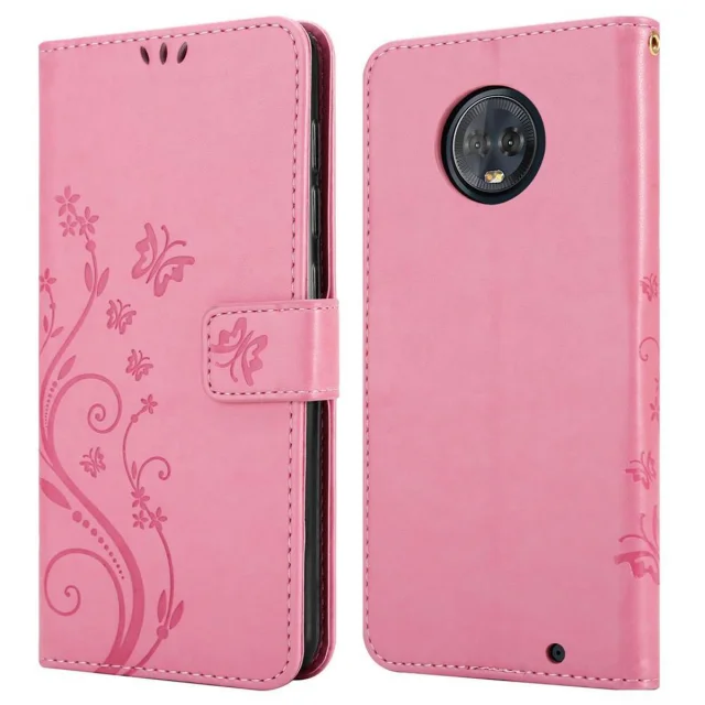CADORABO Motorola MOTO G6 PLUS v klasična zlata - ovitek v cvetličnem dizajnu z magnetnim zapiranjem, stoječo funkcijo in režami za kartice