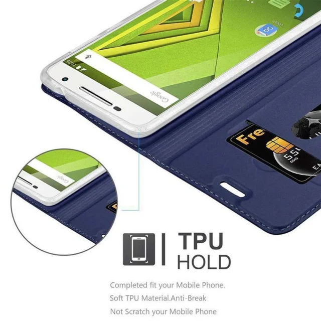 CADORABO Motorola MOTO X PLAY v klasična temno modra - Zaščitni ovitek z magnetnim zapiranjem, stoječo funkcijo in režo za kartice