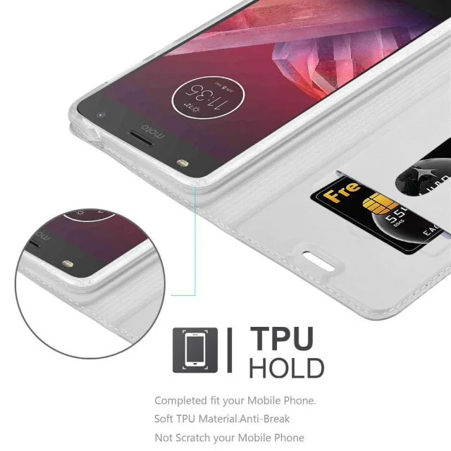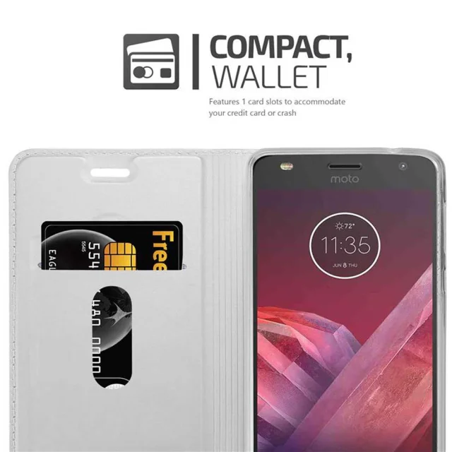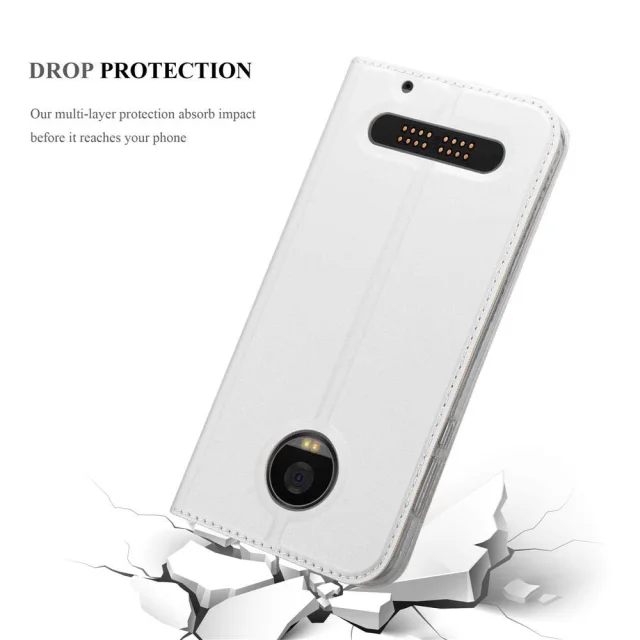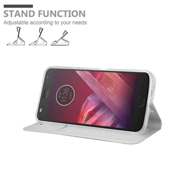 CADORABO Motorola MOTO Z2 PLAY/Z2 FORCE v klasično srebrno - Zaščitni ovitek z magnetnim zapiranjem, stoječo funkcijo in režo za kartice
