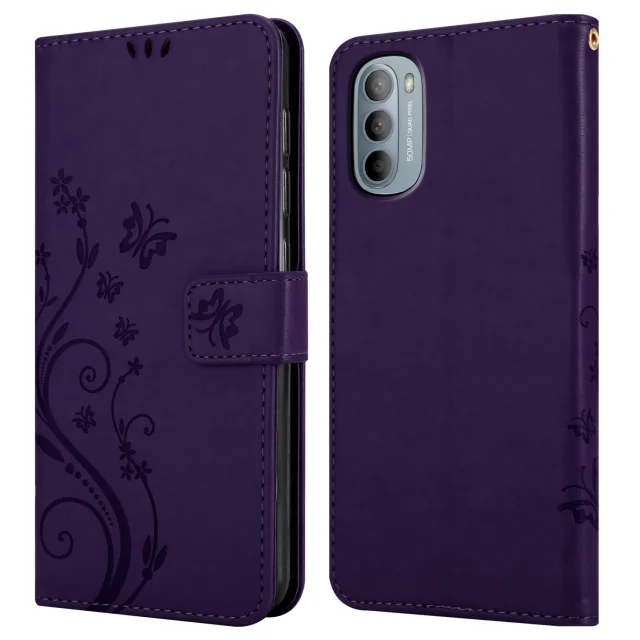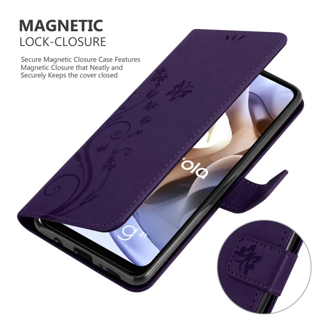 CADORABO Motorola temno vijolična - zaščitni pokrov v oblikovanju cvetja z magnetnim zapiranjem, stoječimi funkcijami in režami za kartice