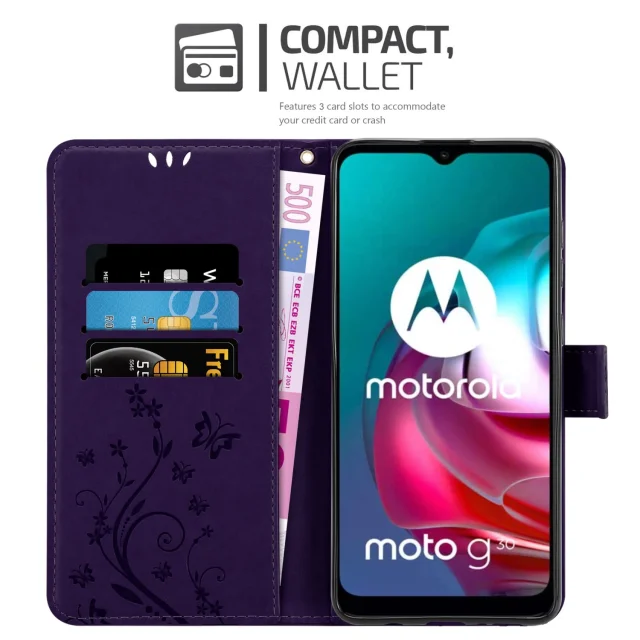 CADORABO Motorola temno vijolična - zaščitni pokrov v oblikovanju cvetja z magnetnim zapiranjem, stoječimi funkcijami in režami za kartice