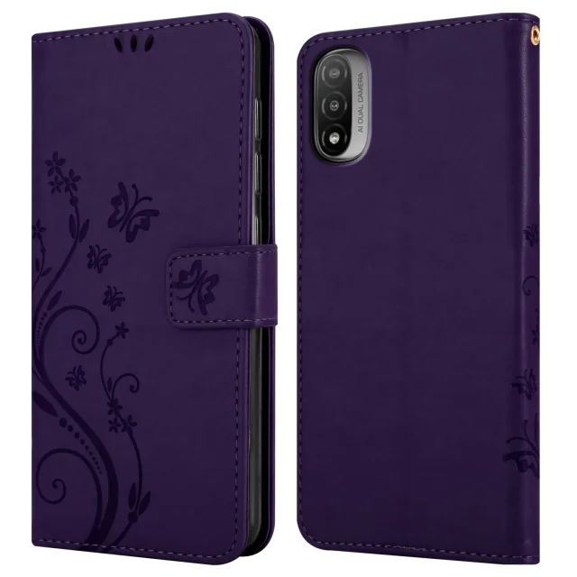 CADORABO Motorola temno vijolična - zaščitni pokrov v oblikovanju cvetja z magnetnim zapiranjem, stoječimi funkcijami in režami za kartice