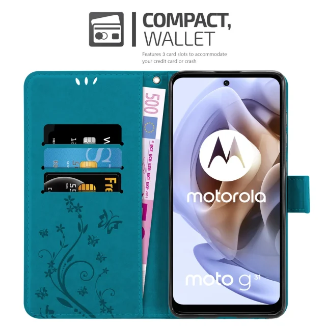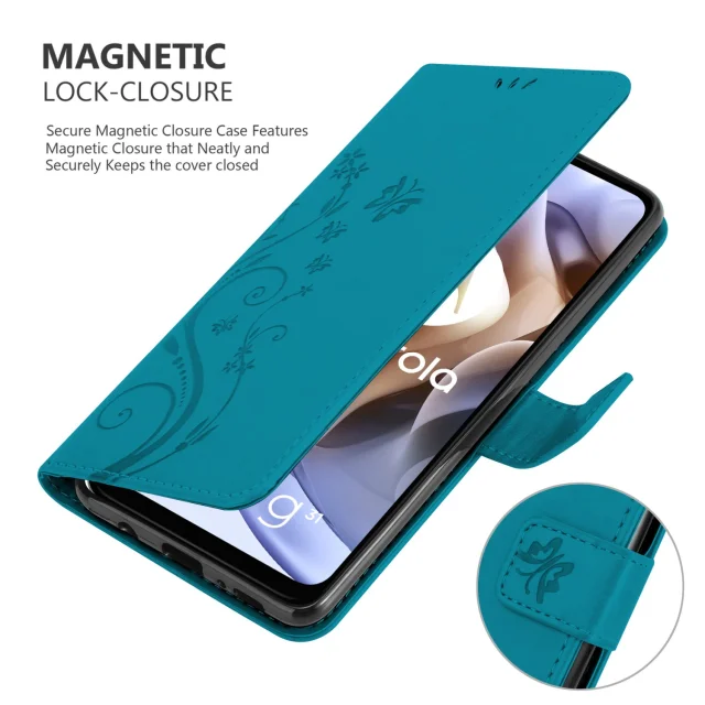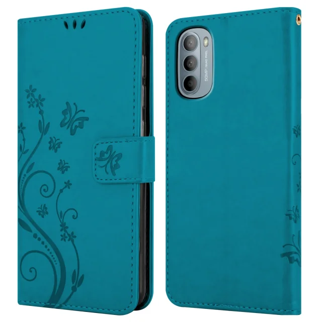 CADORABO Motorola v cvetlični modri barvi - zaščitni pokrov v oblikovanju cvetja z magnetnim zapiranjem, stoječimi funkcijami in režami za kartice