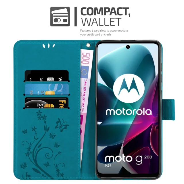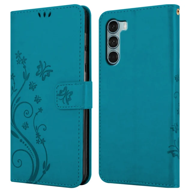 CADORABO Motorola v cvetlični modri barvi - zaščitni pokrov v oblikovanju cvetja z magnetnim zapiranjem, stoječimi funkcijami in režami za kartice