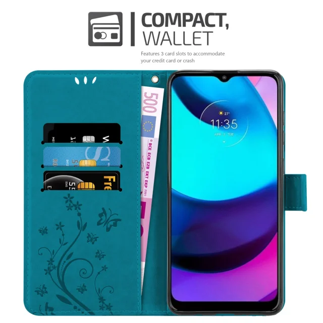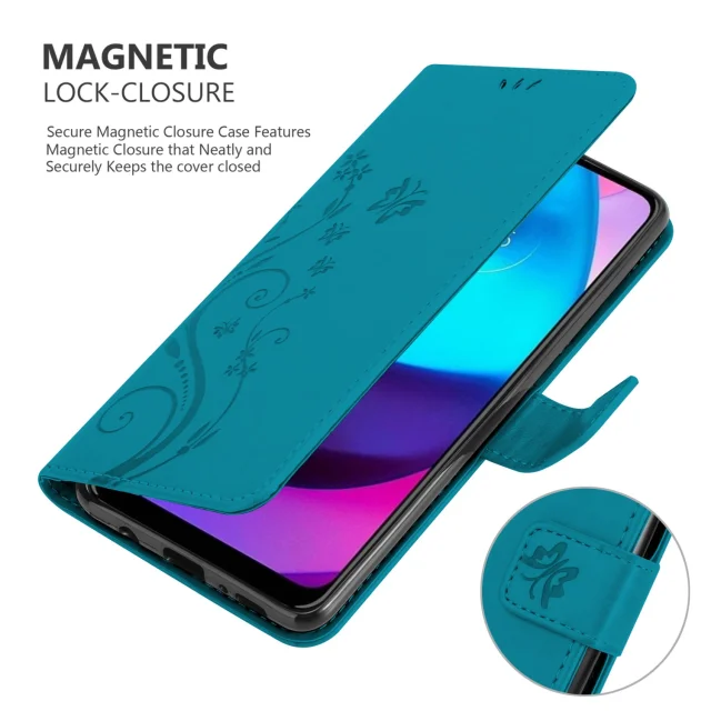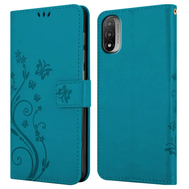 CADORABO Motorola v cvetlični modri barvi - zaščitni pokrov v oblikovanju cvetja z magnetnim zapiranjem, stoječimi funkcijami in režami za kartice