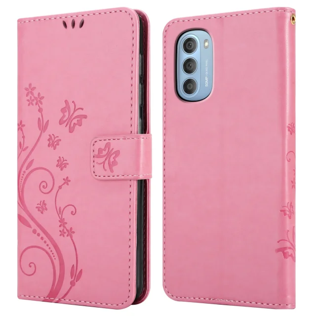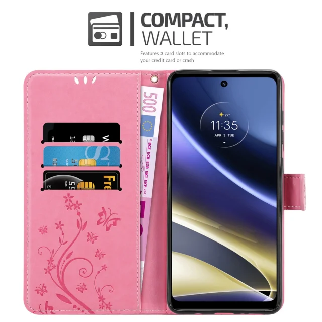 CADORABO Motorola v cvetlični roza barvi - zaščitni pokrov v oblikovanju cvetja z magnetnim zapiranjem, stoječimi funkcijami in režami za kartice