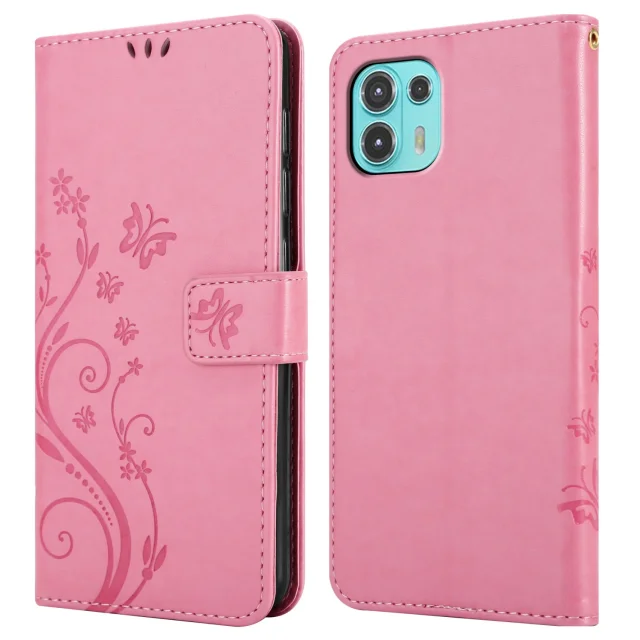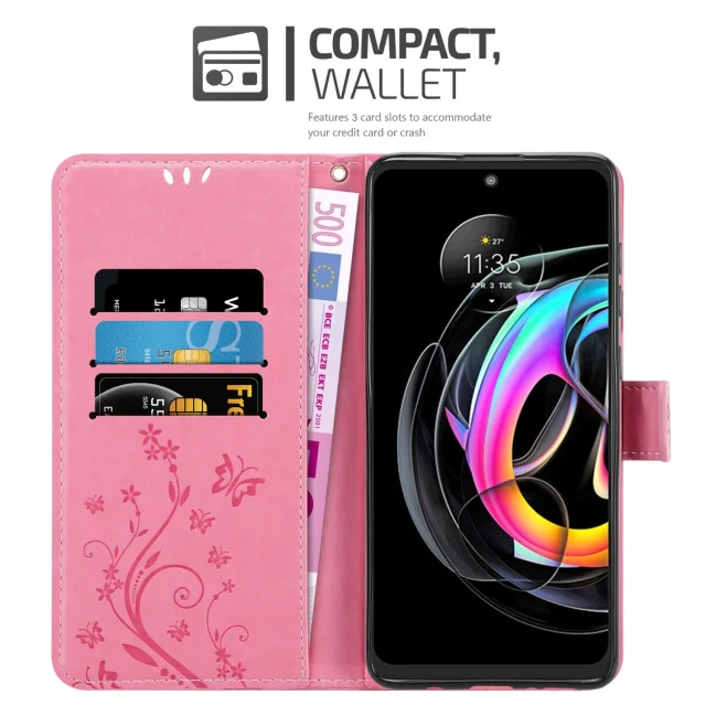 CADORABO Motorola v cvetlični roza barvi - zaščitni pokrov v oblikovanju cvetja z magnetnim zapiranjem, stoječimi funkcijami in režami za kartice