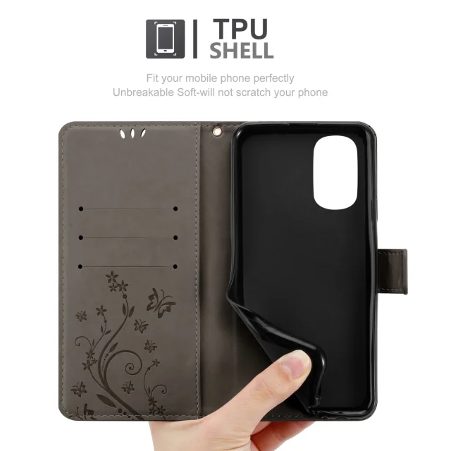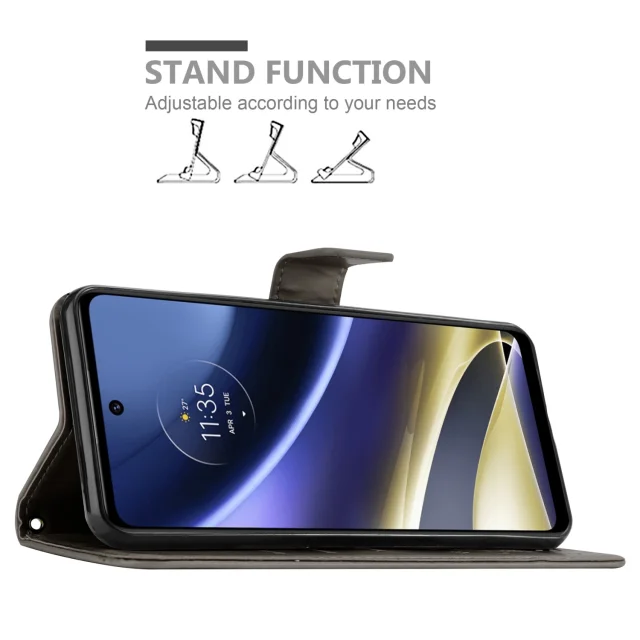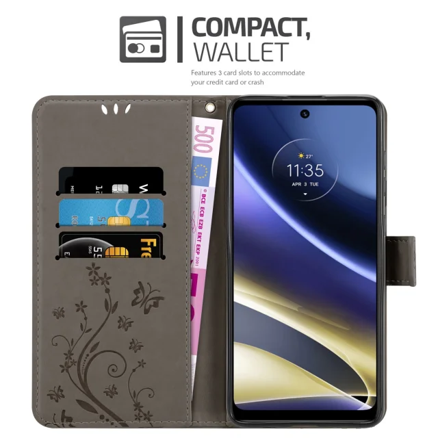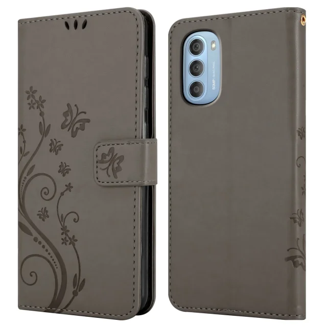 CADORABO Motorola v cvetlični sivi barvi - zaščitni pokrov v oblikovanju cvetja z magnetnim zapiranjem, stoječimi funkcijami in režami za kartice