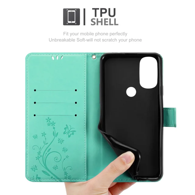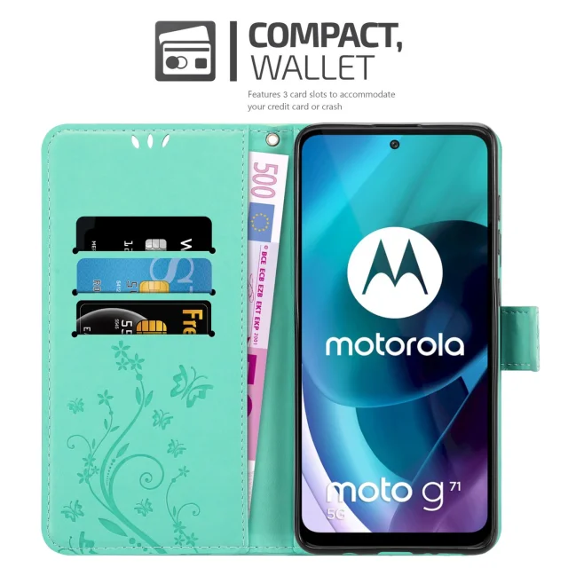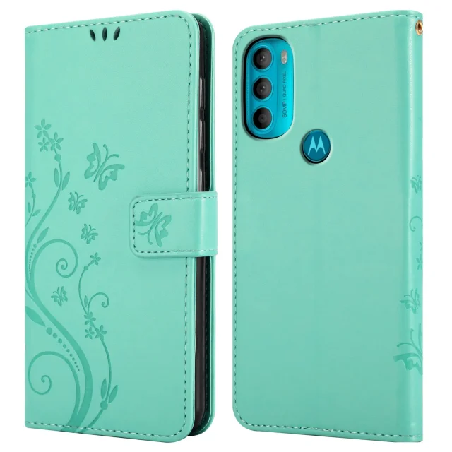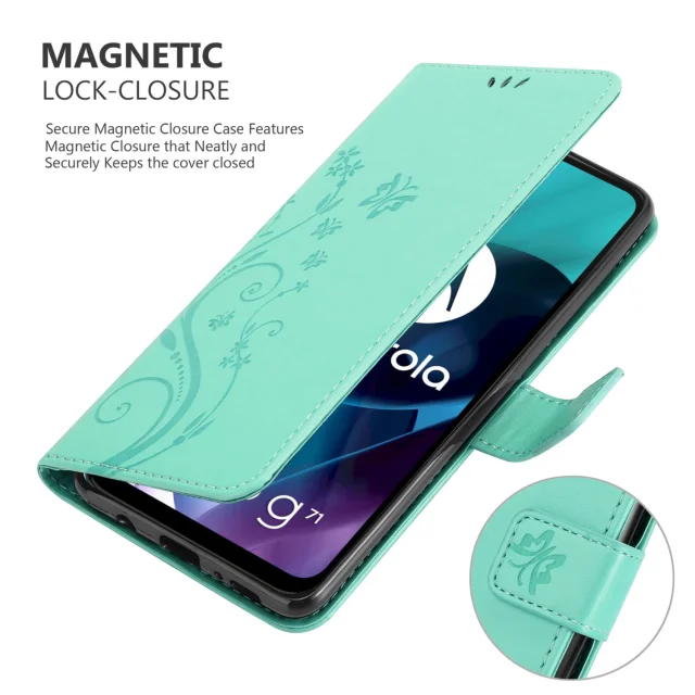 CADORABO Motorola v cvetlični turkizni - Zaščitni pokrov v oblikovanju cvetja z magnetnim zapiranjem, stoječimi funkcijami in režami za kartice