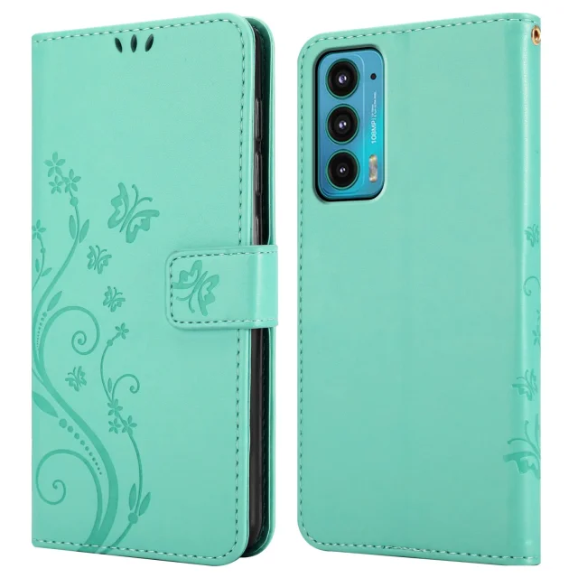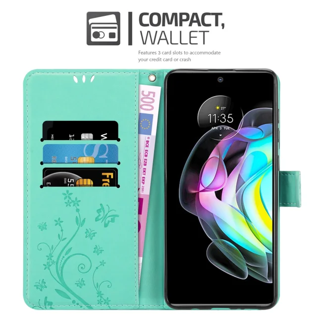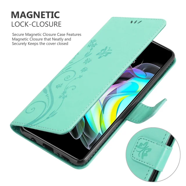 CADORABO Motorola v cvetlični turkizni - Zaščitni pokrov v oblikovanju cvetja z magnetnim zapiranjem, stoječimi funkcijami in režami za kartice