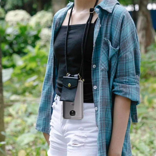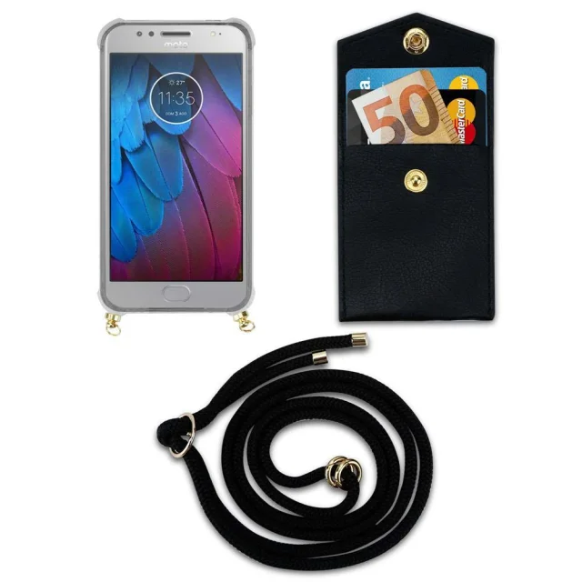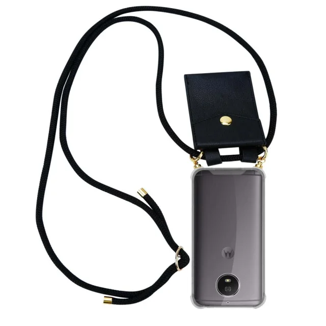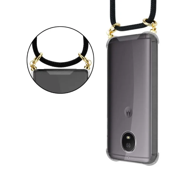 CADORABO Motorolo v črni barvi - silikonski zaščitni pokrov z zlatimi obroči, kabelskim pasom in snemljivim ohišjem