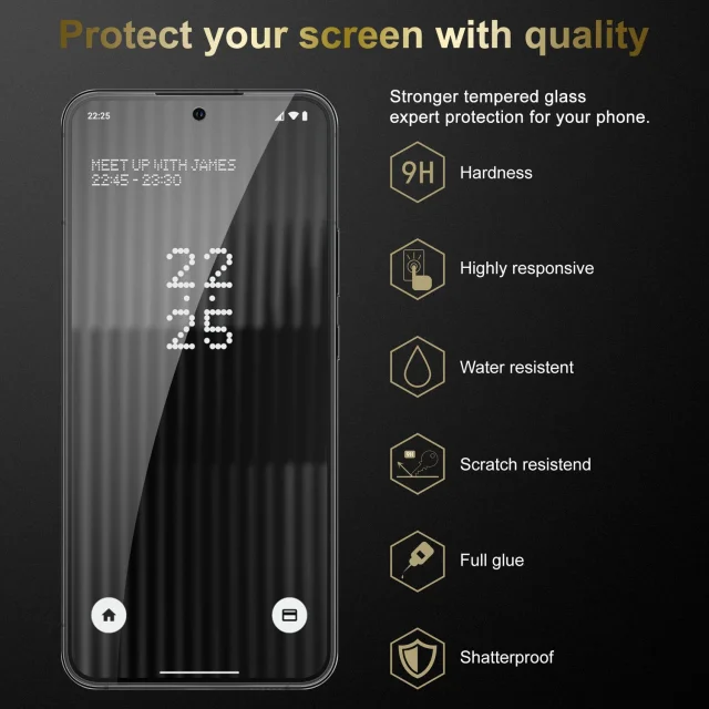 Odpornost prask kristalno prozornega zaščitnega stekla podaljša življenjsko dobo zaslona tudi v primeru kapljic. Steklo je izjemno tanko in niti ne ovira obratovanja telefona niti ne spremeni kakovosti slike.